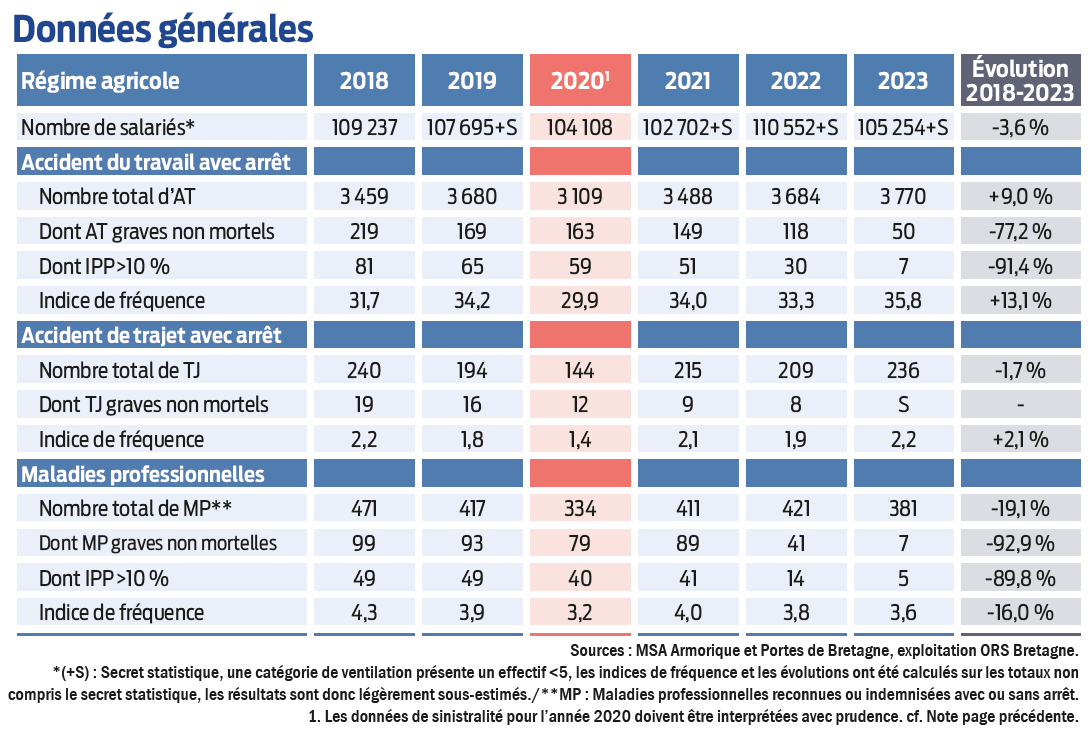 En 2023, plus de 105 250 salariés dépendent du Régime Agricole dont 4,8 % sont en apprentissage et, au total près de 4 400 sinistres ont été enregistrés.