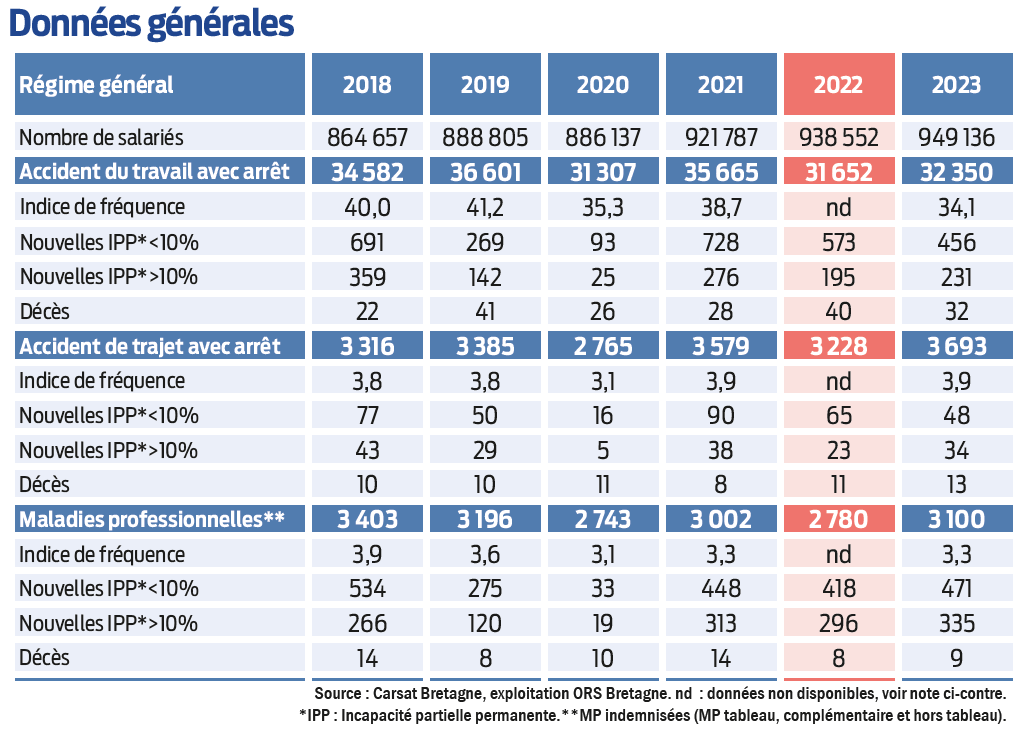 En 2023, près de 950 000 salariés dépendent du Régime Général et plus de 39 100 sinistres ont été indemnisés.